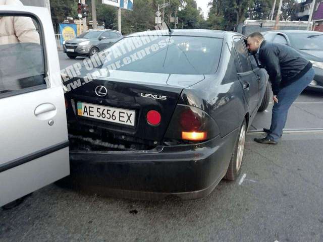 В Днепре на перекрестке произошло тройное ДТП с участием грузового автомобиля DAF и двух легковых автомобилей Lexus IS200 и Peugeot 107: в аварии обошлось без пострадавших.