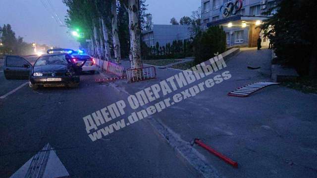 В Днепре Volkswagen на еврономерах врезался в ограждение: есть пострадавшие