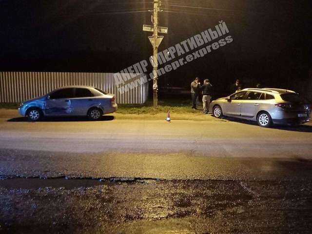 В Днепре на перекрестке столкнулись автомобили Renault и Chevrolet: в результате аварии образовалась пробка.