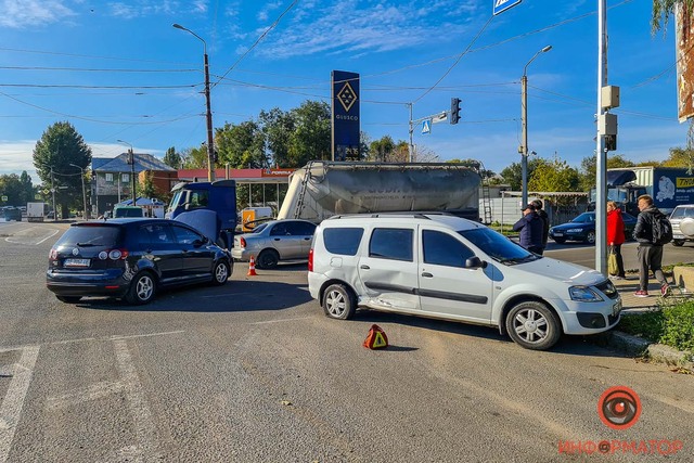 В среду, 21 октября, на перекрестке проспекта Богдана Хмельницкого с улицей Шинной столкнулись Volkswagen и Lada. Пассажира одного из автомобилей с места аварии забрала скорая помощь.