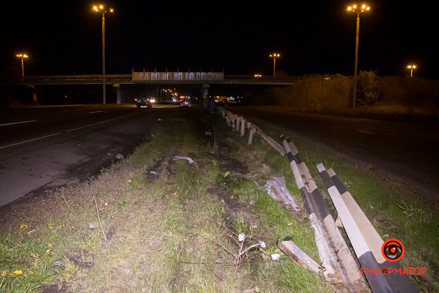 По словам водителя, он двигался со стороны Днепра по Донецкому шоссе. Мужчина начал поворачивать вправо, в сторону Харькова, но попал в яму. В результате водитель потерял управление, въехал в дорожное ограждение и начал переворачиваться.