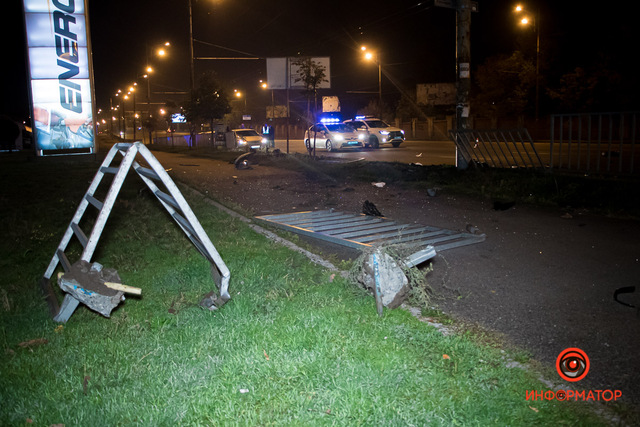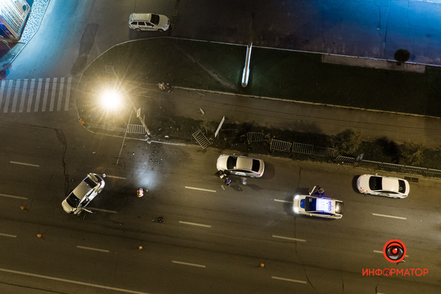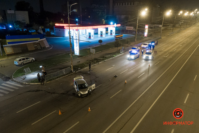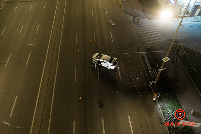 В субботу, 24 октября, около 3:00 на Слобожанском проспекте Hyundai службы такси Bolt «влетел» в дорожное ограждение. В аварии никто не пострадал.