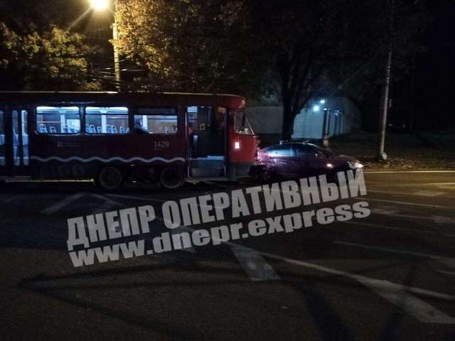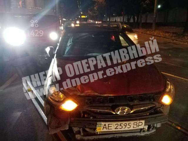 В Днепре сегодня, 26 октября, на улице Макарова Hyundai врезался в трамвай.
