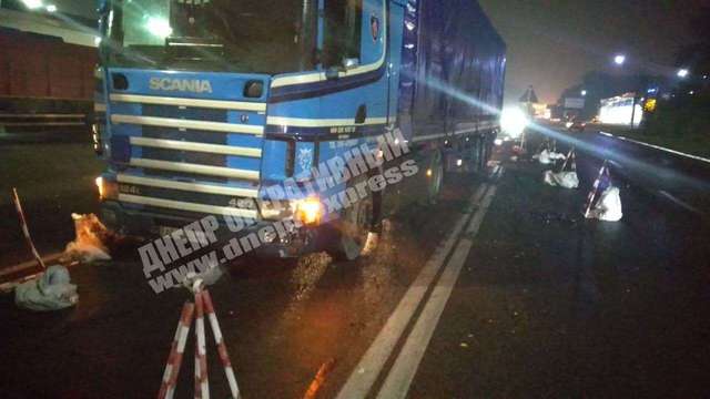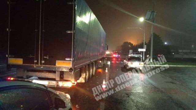 Авария произошла на Криворожском шоссе, в районе АЗС Авиас. Водитель фуры Scania во время движения не заметил дорожное ограждение и знаки, предупреждающие о ремнотных работах, снес их и остановился. О ДТП сообщили дорожные работники, которые стали свидетелями данного происшествия.