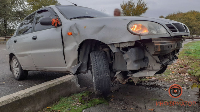 Авария произошла на заезде на виадук. Автомобиль двигался со стороны Рыбальска по направлению в Приднепровск. Как рассказал водитель, на повороте Daewoo занесло, вследствие чего его повело в сторону и в конечном итоге он врезался в отбойник. Машина повисла на одной из секций.