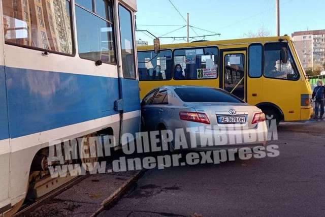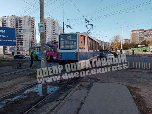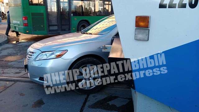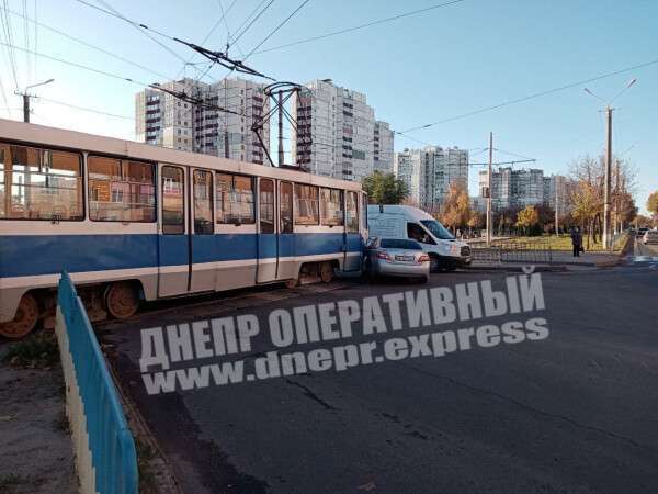 В Днепре сегодня, 10 ноября, на улице Михновского легковушка врезалась в трамвай.