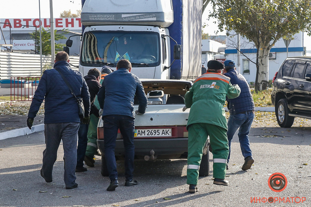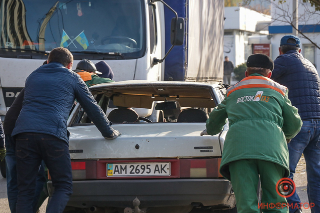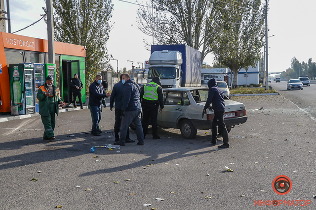 В Днепре на Малиновского ВАЗ вылетел на заправку и перевернулся (видео ДТП)