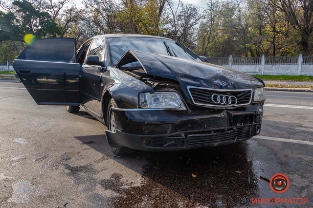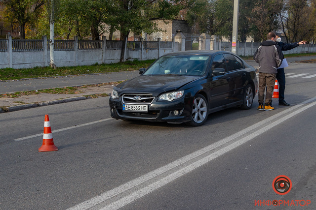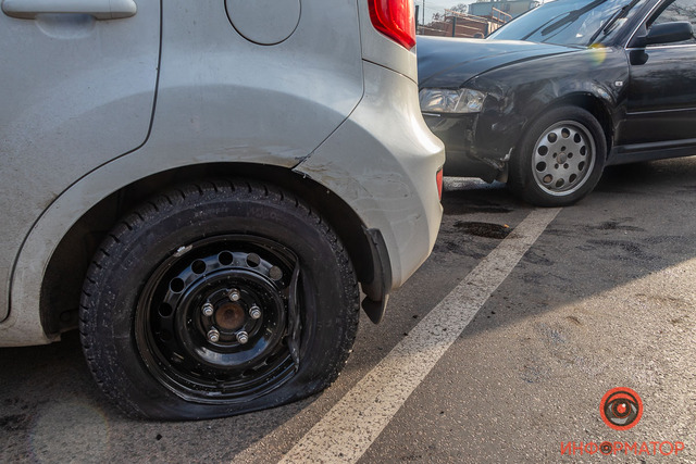 В Днепре на Калнышевского Subaru зацепил Kia: автомобиль вылетел на «встречку» и столкнулся с Audi