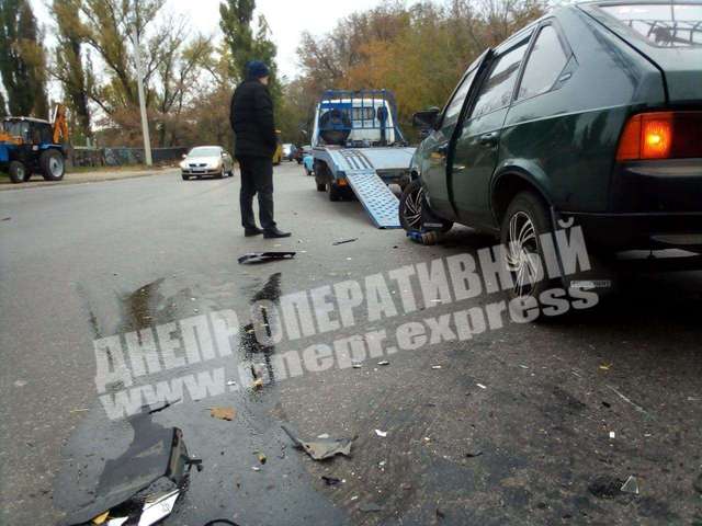 В Днепре на Щепкина Москвич врезался в Skoda: видео момента ДТП