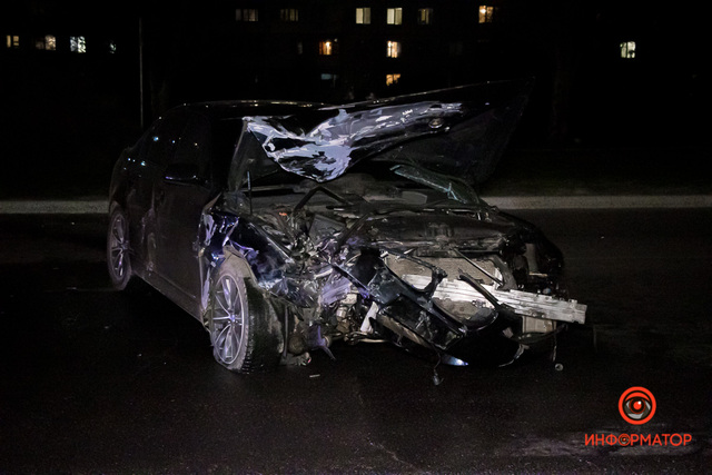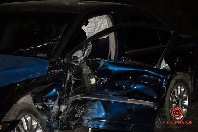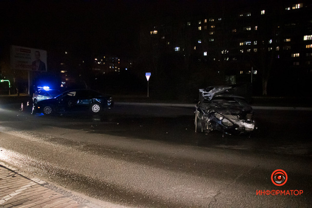 В Днепре произошло ДТП с участием легковых автомобилей Volvo и BMW: от удара один из автомобилей загорелся. В аварии пострадал водитель Volvo, его госпитализировали.