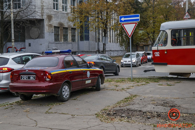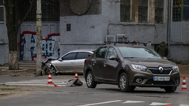 В Днепре на Пушкина Opel столкнулся с Renault и врезался в столб: трамваи заблокированы