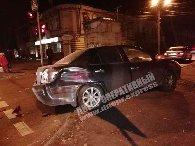 В Днепре на перекрестке водитель автомобиля УАЗ проехал на красный сигнал светофора и спровоцировал ДТП с двумя легковыми автомобилями, Geely и Daewoo.