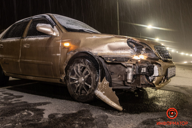 В субботу, 21 ноября, на Кайдакском мосту Geely врезался в отбойное ограждение. В ДТП пострадала девушка, ее забрала скорая.