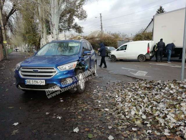 В Днепре сегодня, 24 ноября, произошло ДТП с участием трех автомобилей - Mercedes, Renault и Ford.