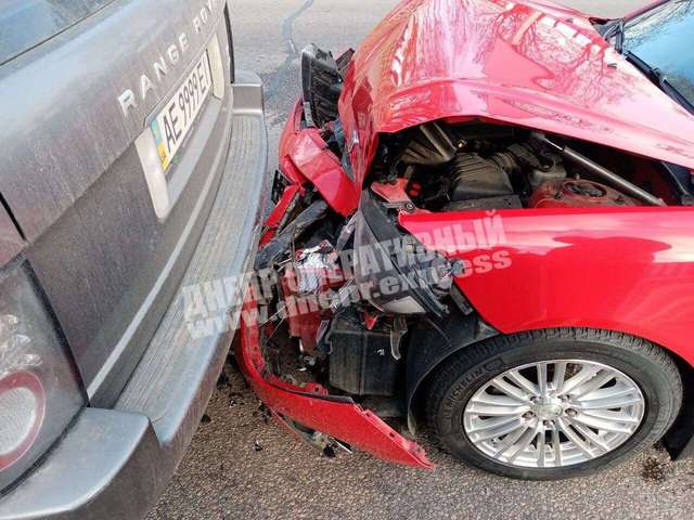В Днепре на Запорожском шоссе спортивный автомобиль врезался в Range Rover