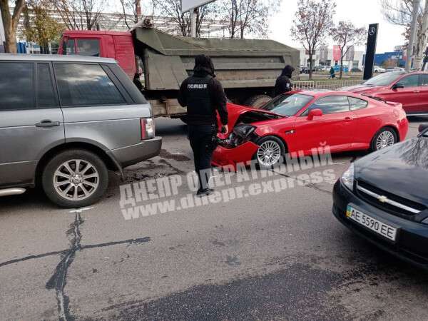 По предварительной информации, автомобиль Hyundai Tuscani и Range Rover двигались со стороны аэропорта по Запорожскому шоссе. Водитель спортивного автомобиля не придерживался безопасной дистанции, из-за чего врезался во внедорожник. В результате аварии транспортные средства получили механические повреждения. Погибших и пострадавших нет.