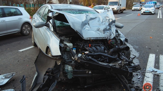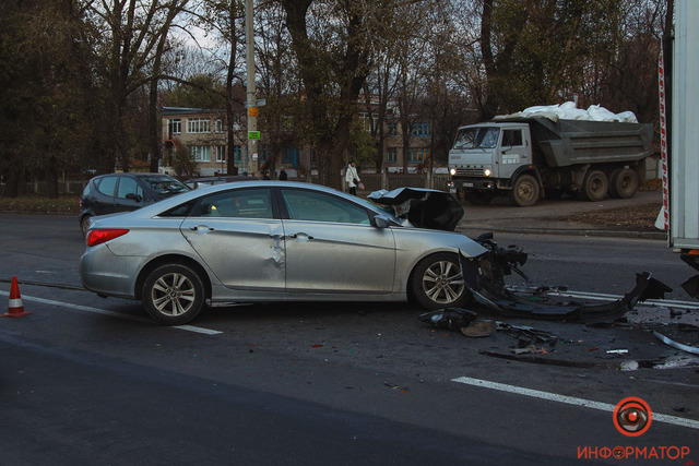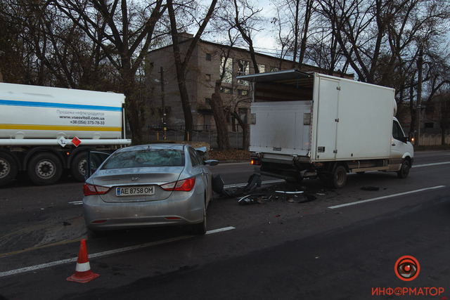 На выезде из Днепра столкнулись грузовик, Volkswagen, Hyundai и маршрутка: движение затруднено