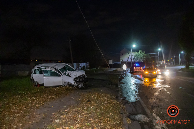 Инцидент произошел около 22:30. По предварительной информации от полиции, автомобиль двигался по улице Криворожской со стороны улицы Рабочей. В районе дома №63 машина врезалась в фонарный столб. От удара тот упал на землю. В результате ДТП пострадали двое человек: мужчина, который сидел на переднем сиденье, и девушка.