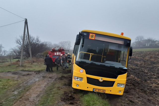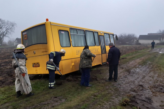 30-го ноября в 7:23 в Службу спасения «101» поступило сообщение о необходимости помощи водителю школьного автобуса, который застрял в грязи вблизи улицы Молодежная поселка городского типа Кринички.