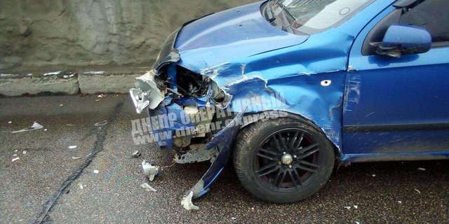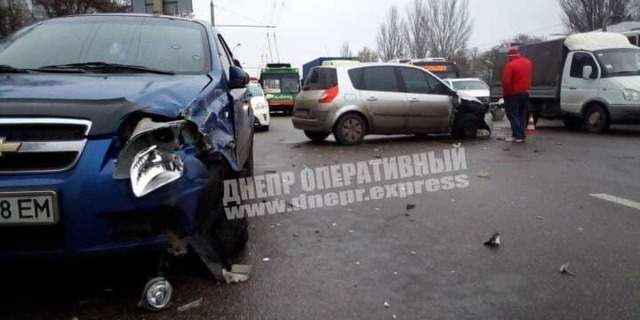 Renault Scenic двигался по Запорожскому шоссе во второй полосе в сторону "Эпицентра". Водитель, не убедившись в безопасности, начал перестраиваться в крайний правый ряд, в результате чего в него врезался Chevrolet. От удара Renault Scenic развернуло на проезжей части. Водитель другого Renault, движущийся по Запорожскому шоссе, не успел среагировать и врезался в иномарку.