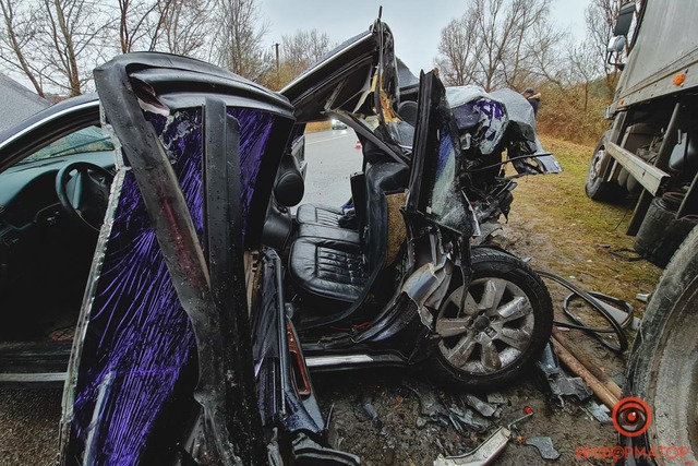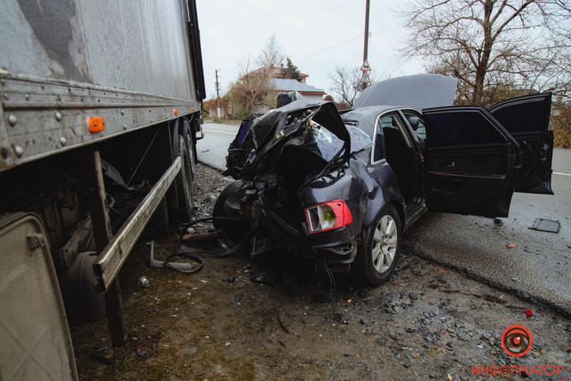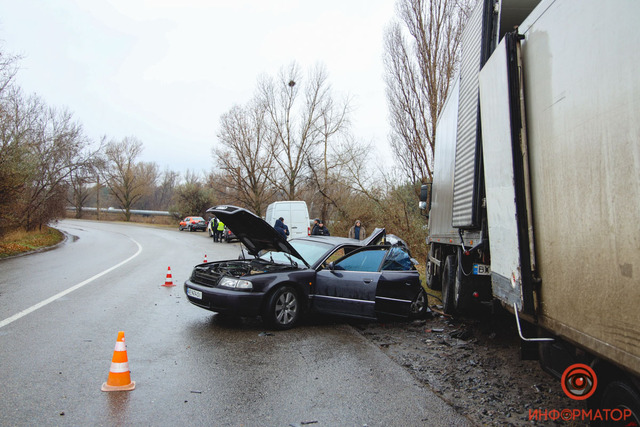 По предварительной информации, Audi двигался со стороны Приднепровска, Mercedes — ему навстречу. В районе улицы Норильской, при плавном повороте, водитель легкового автомобиля не справился с управлением, ушел в неконтролируемый занос и ударился задней левой стороной в фуру.