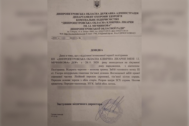 У него открытая черепно-мозговая травма, ушиб головного мозга III степени, острая эпидуральная гематома теменной области, перелом основания черепа с двух сторон, передняя тампонада и ушиб легких. Парень находится в коме.