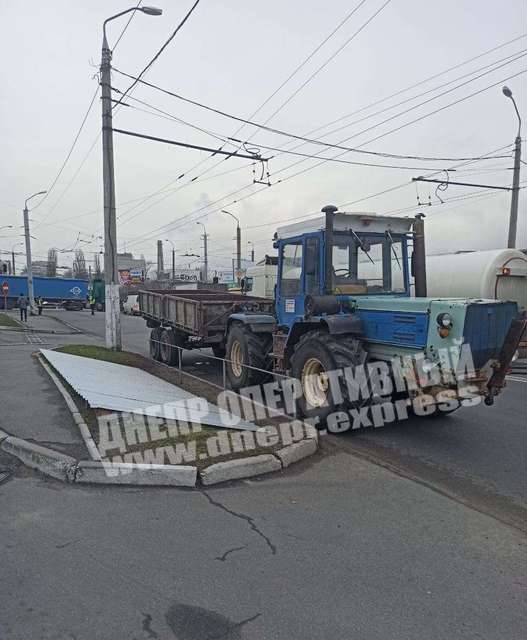 В Днепре сегодня, 16 декабря, на пересечении улиц Янтарная и Калиновая произошло ДТП с участием трактора и автобуса.