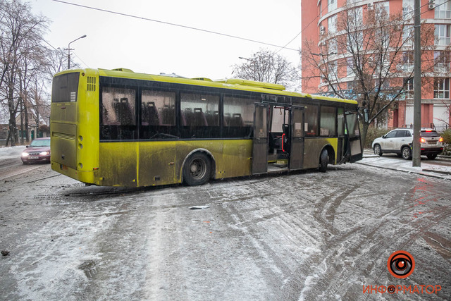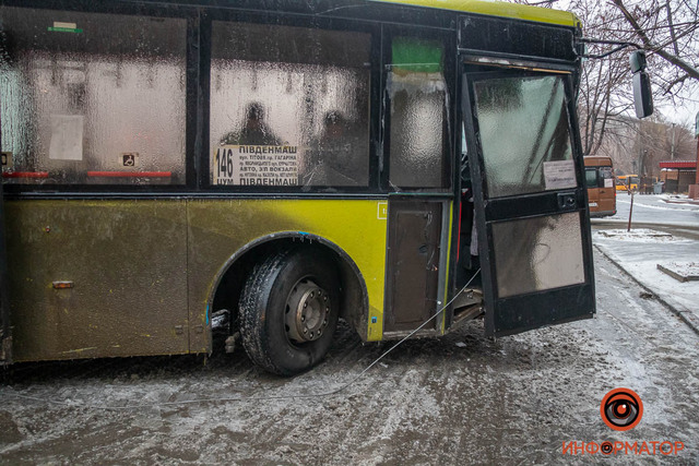 В Днепре возле ТРЦ Neo Plaza 146-ой автобус завалил столб и развернулся