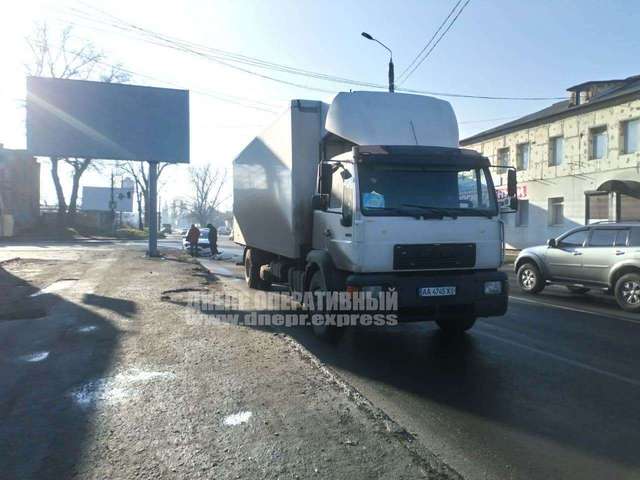 В Днепре на улице Павлова грузовик зацепил Ford (момент ДТП)