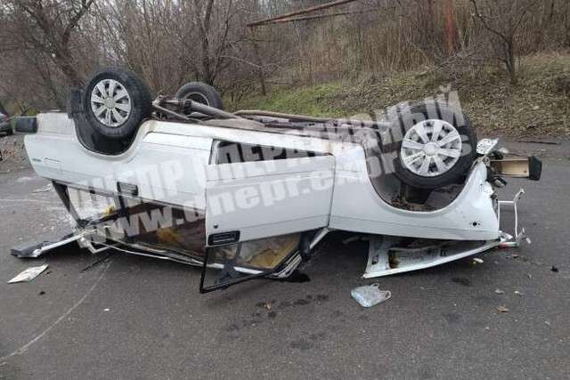 В Днепре на улице Андрейченко Новокодакского района перевернулся автомобиль ВАЗ 21043.