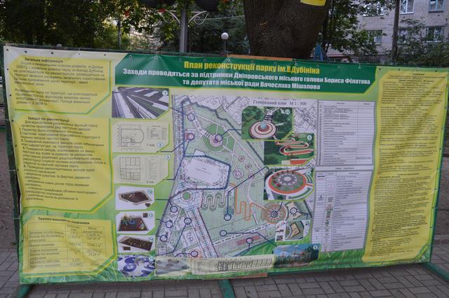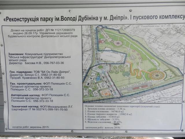 «Заканчивают реконструкцию здания в парке им. Володи Дубинина. Получилось отлично, сейчас облагораживают прилегающую территорию.Увы, в горсовете Днепра пока что об активизации этих работ ничего не сообщают…В плане реконструкции самого парка спустя 2 года ничего не поменялось, не сделано ровным счётом ничего».