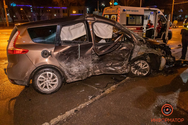 В Днепре на Запорожском Шоссе столкнулись Mercedes и Renault: двоих человек забрала скорая