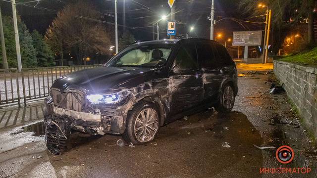 В Днепре возле Мерефо-Херсонского моста BMW снес ограждение и ударился в стену
