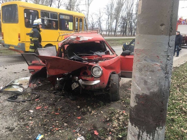 На Дніпропетровщині ВАЗ врізався в стовп: дівчинку викинуло через лобове скло, 2 чоловіків затиснуло в понівеченій автівці