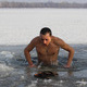 Сегодня здесь народа меньше, чем обычно в Крещение. Может мороз людей испугал, а может эпидемия и призывы властей не рисковать здоровьем. Вместо сотен купальщиков к проруби подходят единицы. Но желающие окунуться все-равно есть и их не останавливает ни 14-градусных мороз, ни маленькая прорубь, ни мелкая река.