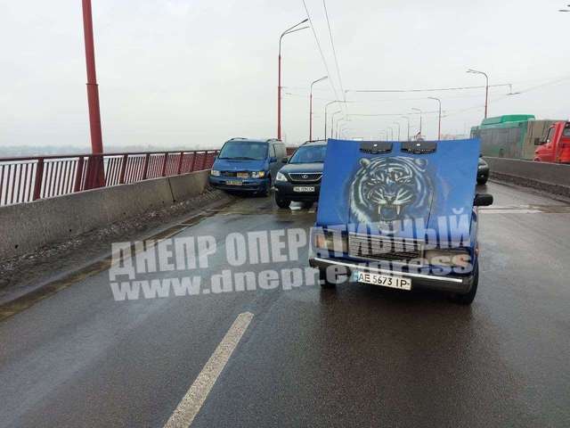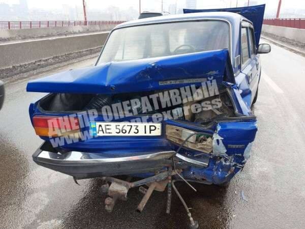 В Днепре сегодня, 22 января, на Новом мосту минивэн Mercedes врезался в ВАЗ.
