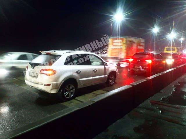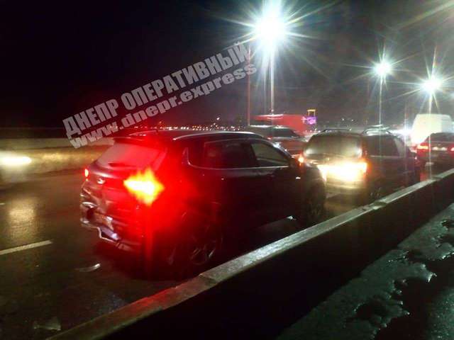 В Днепре в автомобиль Opel, стоявший на аварийке на мосту, врезался автомобиль Chery, в который в свою очередь врезался автомобиль Renault: в аварии никто не пострадал.