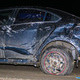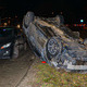 Авария случилась возле Кайдакского моста примерно в 18:00. По предварительной информации от патрульных, оба автомобиля ехали по набережной со стороны Красного Камня. Как произошла авария в данный момент неизвестно, но серая Mazda вылетела на разделитель и перевернулась. Судя по следам на дороге, один из автомобилей изначально влетел в бордюр.