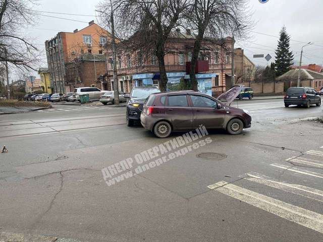 В Днепре на перекрестке произошло ДТП с участием автомобилей Haval и Zaz Vida: из-за аварии, произошедшей на трамвайных путях, заблокировано движение трамваев.