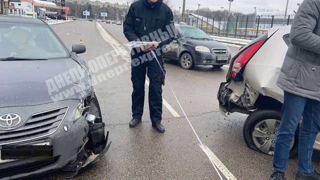 В Днепре сегодня, 8 февраля, на Запорожском шоссе произошло дорожно-транспортное происшествие с участием двух легковых автомобилей - Hyundai и Toyota.