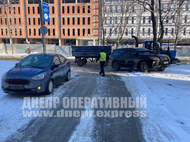 В Днепре на проспекте Пилипа Орлика сегодня, 19 февраля, произошло ДТП с участием Ford и Lexus, последний в результате въехал в дорожный знак.