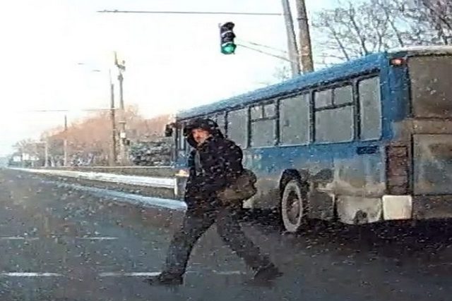 Когда Александр начал подъезжать к остановке и хотел успеть на зеленый, между автобусов проскочил мужчина и не смотря по сторонам решил переходить дорогу. Водитель едва успел увильнуть от невнимательного пешехода. А все могло закончится намного хуже.