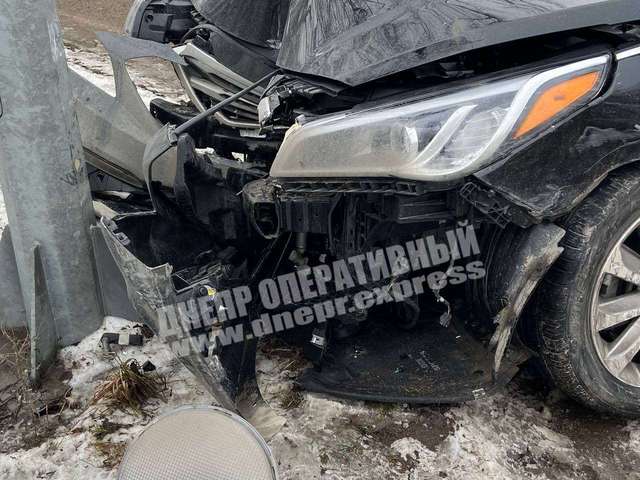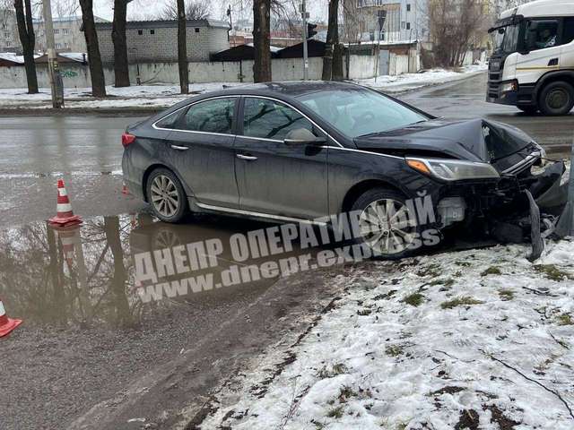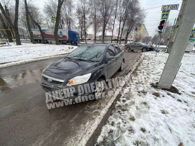В Днепре на Энергетической Ford Focus столкнулся с Hyundai: одна из машин отлетела в столб