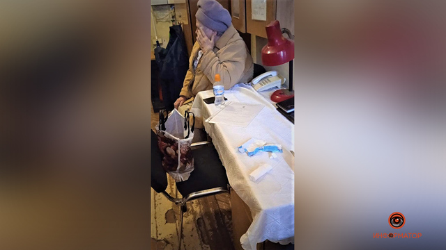 В центре Днепра женщина упала и разбила в кровь лицо: охранник суда увидел это по камерам и помог ей
