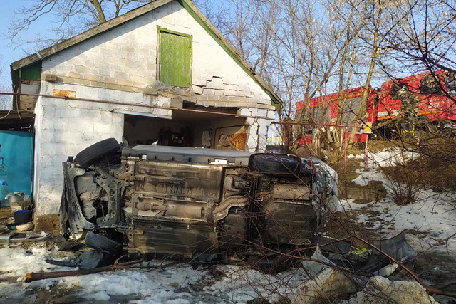 Утром 26-го февраля в поселке Чаплинка Петриковского района легковой автомобиль «Nissan Tiida» влетел в дом.