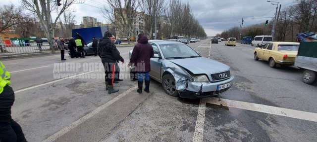 В Днепре сегодня, 1 марта, на Набережной Заводской в районе остановки "Детский комбинат" произошло дорожно-транспортное происшествие с участием двух легковых автомобилей - Mercedes и Audi.