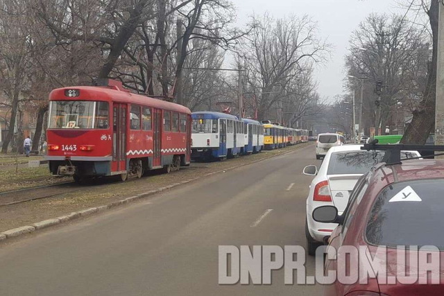 На место происшествия прибыло ремонтное управление КП "Днепровский электротранспорт". Сейчас аварию на рельсах устраняют.>