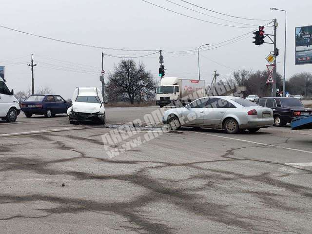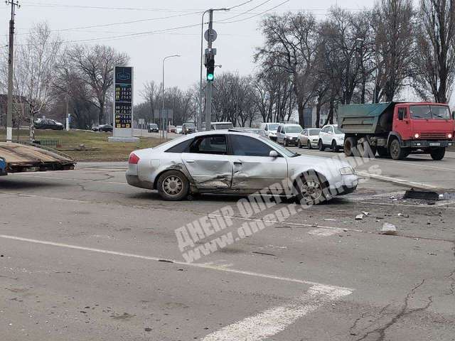В Днепре, сегодня, 5 февраля, на перекрестке улиц Аэропортовской и Старокодакской произошло ДТП с участием двух легковых автомобилей - автомобилей Daewoo и Audi.