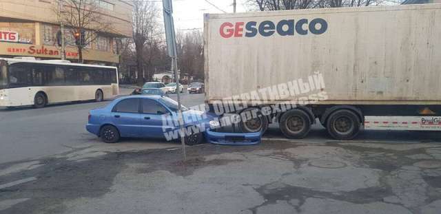 В Днепре 7 марта на проспекте Сергея Нигояна столкнулись фура и легковой автомобиль.