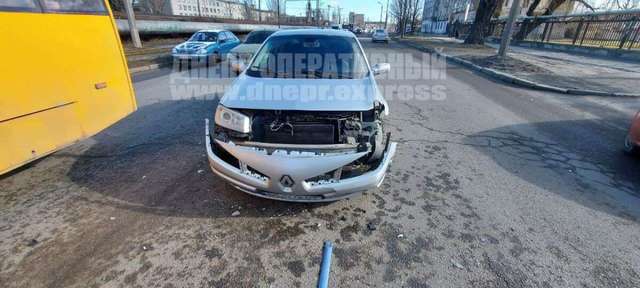 В Днепре сегодня утром, 9 марта, произошло дорожно-транспортное происшествие с участием двух легковых автомобилей - Renault (службы Uklon) и Chevrolet.